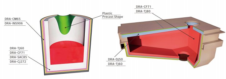 This series of products is divided into different materials such as corundum based, mullite based, high-purity aluminum magnesium based, and spinel based products. Construction methods such as vibration or self flow casting, ramming, and spraying can be used. Compared with traditional refractory bricks, this series of products has convenient construction, good overall integrity, higher resistance to penetration and erosion, and its excellent volume stability effectively prevents cracking and peeling.