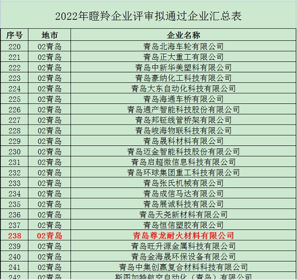 After voluntary application by enterprises, recommendation by the competent departments of small and medium-sized enterprises in various cities, expert evaluation, third-party credit rating, due diligence of gazelle enterprises, joint final review and other procedures, it is proposed to determine Qingdao Dralon Refractory Materials Co., Ltd. and other 580 enterprises as provincial gazelle enterprises for the year 2022 (see Annex 2). This is hereby announced.